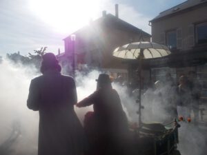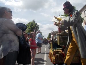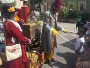 Duo de conteurs-musiciens itinérants qui sillonnent les rues avec leur atelier ambulant, semant au fil du chemin des histoires enchantées pour tous ceux qui croisent leur route.