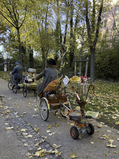 Spectacle joué par deux personnages : Amadeo et Popinal, deux tricycles, un concertina et un violon.